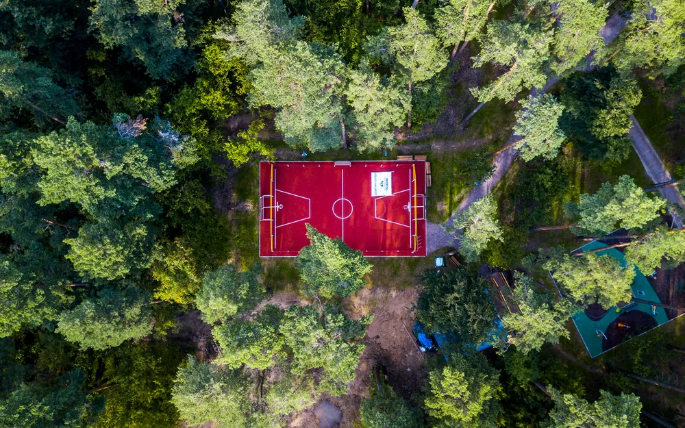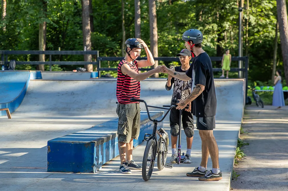В парке действуют спортивные площадки для воркаута, бадминтона, стритбола и футбола,
